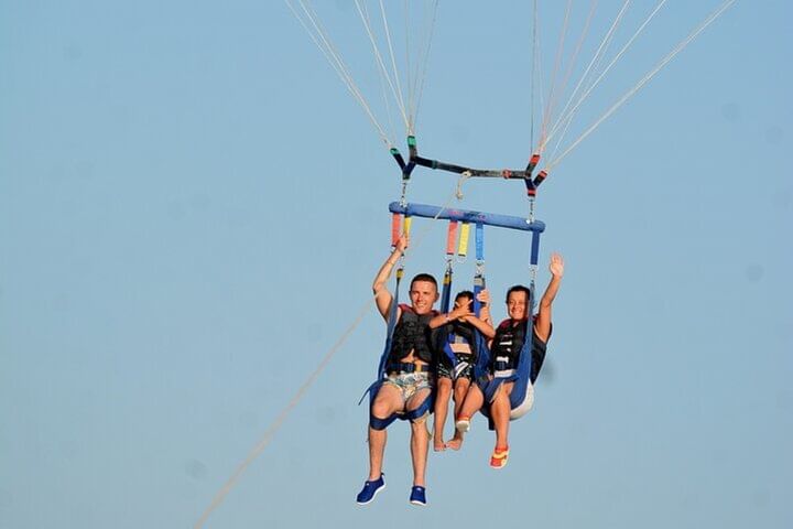 This experience stands out by offering two stunning views of the Red Sea in just two hours — explore the colorful underwater world aboard a glass-bottom boat, then soar high for breathtaking aerial vistas during a parasailing flight. Combining the best of adventure and relaxation, this tour includes private hotel transfers for a hassle-free, seamless journey.