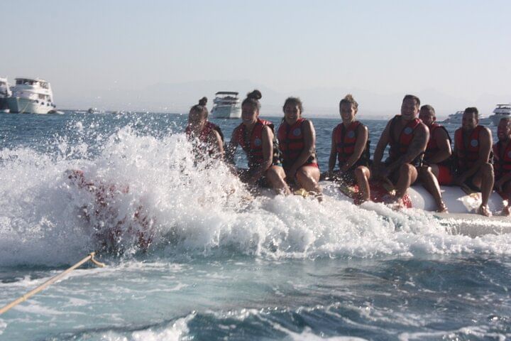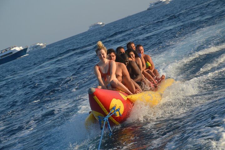 Get ready for an action-packed adventure in Sharm El Sheikh with an exciting mix of banana boat fun and quadra boat thrills, all with hassle-free transportation!