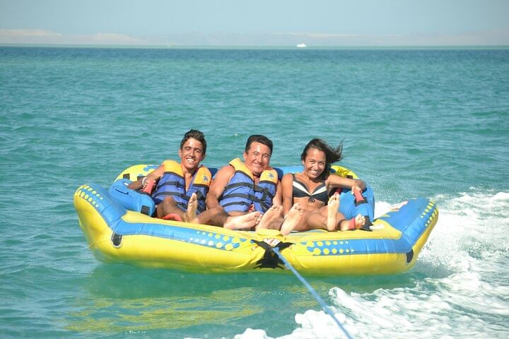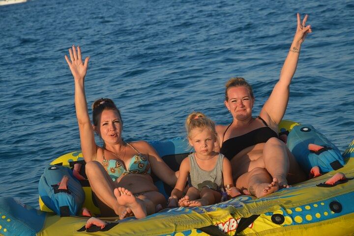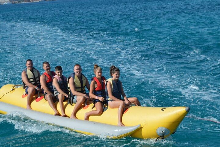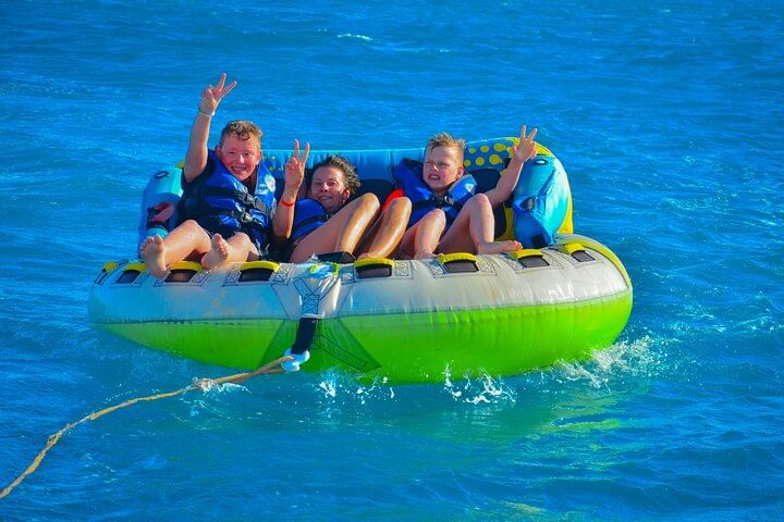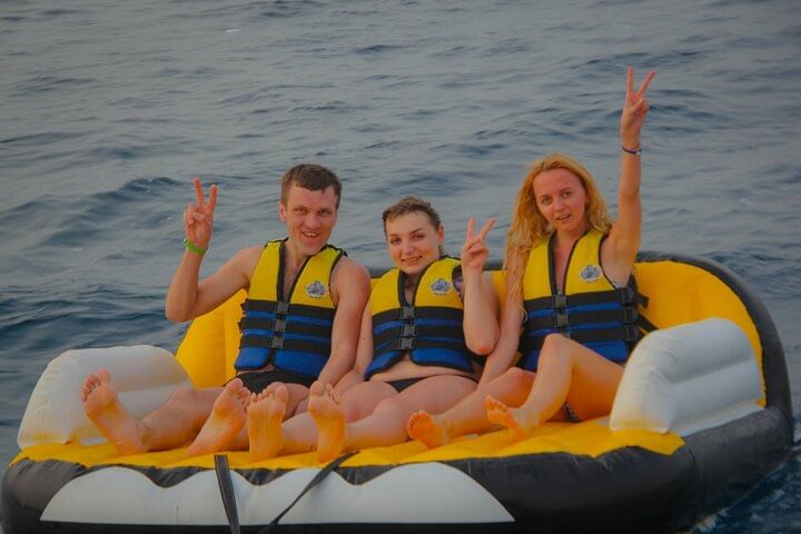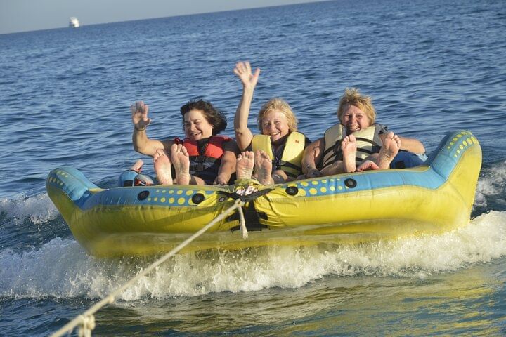 Your experience begins with a comfortable pick-up from your hotel in a private, air-conditioned vehicle. Once you arrive at the beach, you’ll dive straight into the fun with a banana boat ride. Hold on tight as you're towed across the sparkling Red Sea, bouncing along the waves for a laugh-filled ride with friends or family.