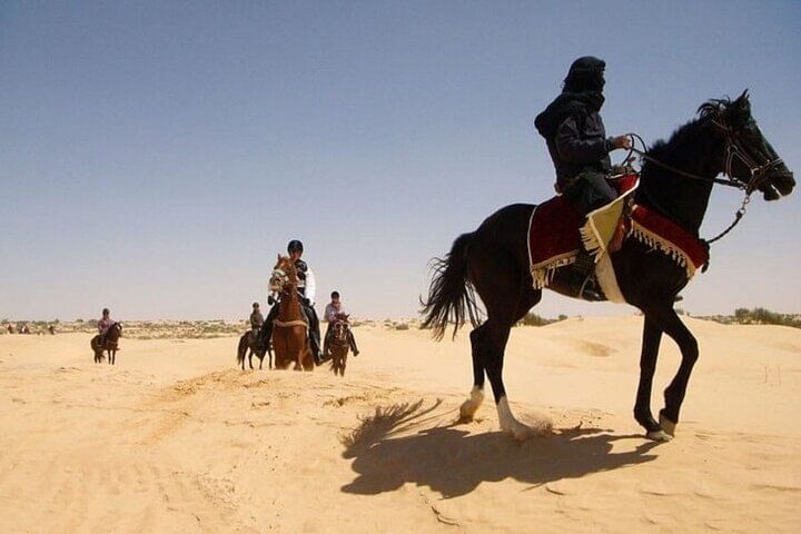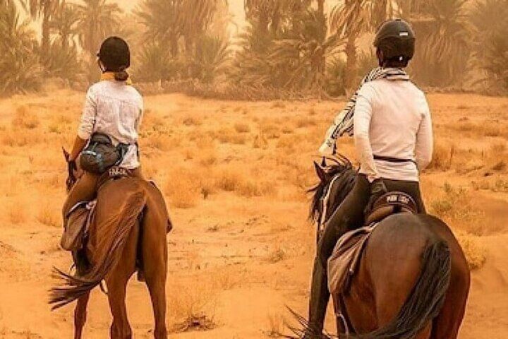 Immerse yourself in a serene one-hour horse ride through the verdant Palmeraie oasis, just outside Marrakech. Sip on traditional Moroccan mint tea as you take in the breathtaking vistas of lush palm groves and the majestic Atlas Mountains. Safety is assured with provided helmets and equipment, ensuring a secure and relaxing adventure. Explore the charm of traditional Berber villages on horseback and create lasting memories in this peaceful desert setting. Book your Palmeraie horse ride today for an authentic and unforgettable Moroccan experience!