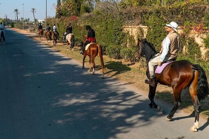 Experience a serene one-hour horse ride through the Palmeraie oasis, enjoying Moroccan mint tea and stunning views of palm groves and the Atlas Mountains. A peaceful, authentic adventure awaits!