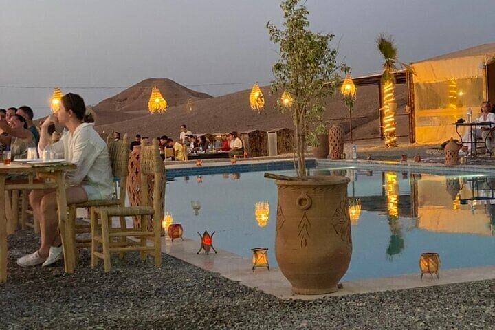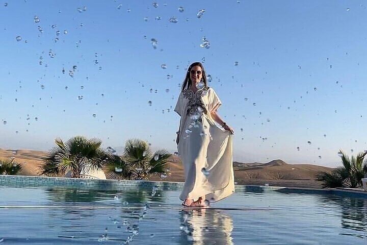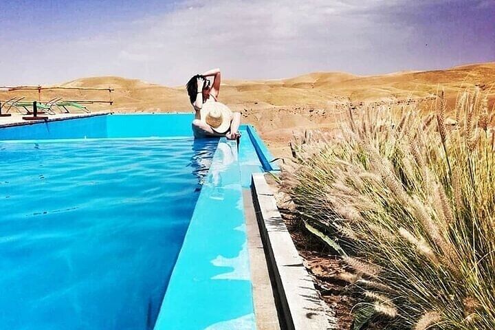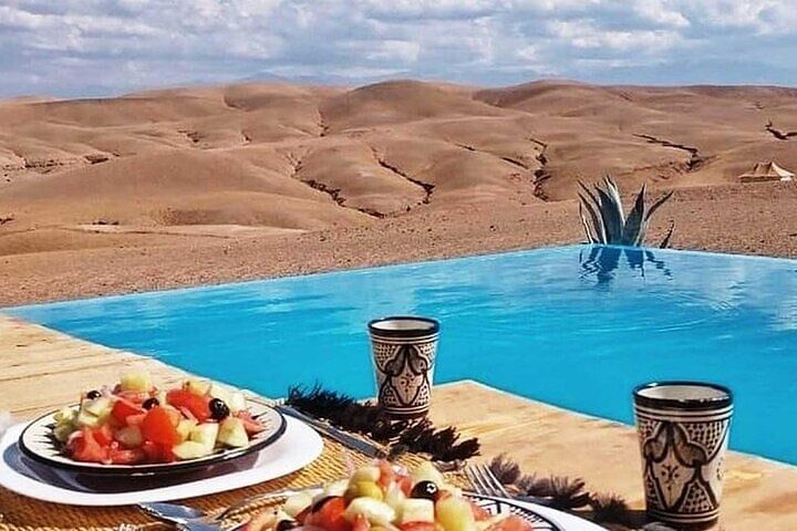 Step away from the bustling energy of Marrakech and enjoy a rejuvenating day trip to the Agafay Desert. Take a refreshing dip in a pool set against stunning desert vistas, indulge in a tasty lunch, and immerse yourself in the peaceful atmosphere.