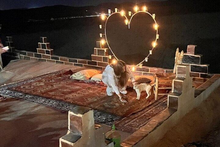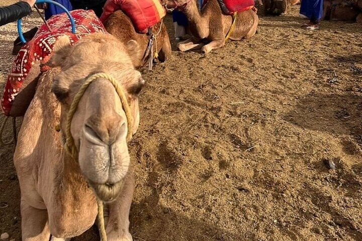 Experience a magical evening in the Agafay Desert with a camel ride, stunning sunset, and traditional Moroccan dinner. Enjoy live music and local entertainment for an unforgettable desert celebration.