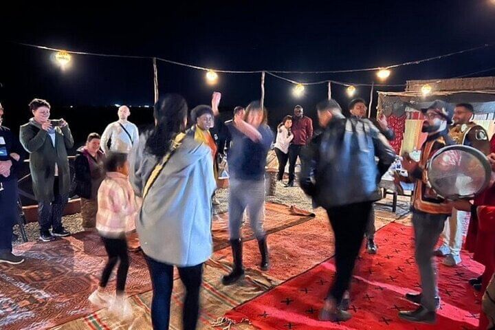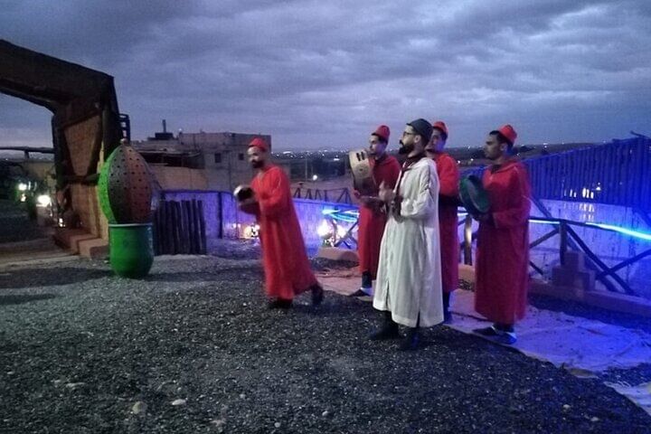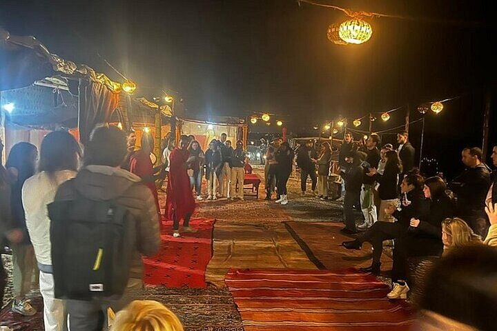 Join us for an unforgettable evening in Amazing Sunset in Agafay Desert with Camels & Dinner - Marrakesh, where adventure meets enchantment. Begin with an exhilarating camel ride as you traverse the dunes and witness a breathtaking desert sunset. After your ride, delight in a sumptuous traditional Moroccan dinner served under the starlit sky. The evening continues with vibrant live music and captivating local entertainment, setting the stage for a perfect desert celebration. Book your Agafay Desert party and dinner with camel ride tour today, and immerse yourself in an evening of magic and unforgettable memories.
