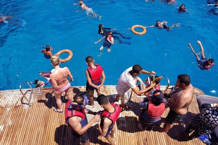Experience the perfect climate of Hurghada with hassle-free transportation included, as you immerse on an unforgettable day on the beautiful Red Sea. Begin your adventure with a scenic boat ride, taking in the stunning views before enjoying a relaxing snorkeling session in crystal-clear waters. Afterward, unwind and explore the serene beauty of Orange Bay Island, a true tropical paradise. Indulge in a delicious lunch aboard a luxurious yacht, surrounded by breathtaking views of the sea. To top off your day, get your adrenaline pumping with a variety of thrilling water activities. We’re offering this all-inclusive, exceptional experience at an unbeatable price, ensuring you have a day full of adventure, relaxation, and luxury.