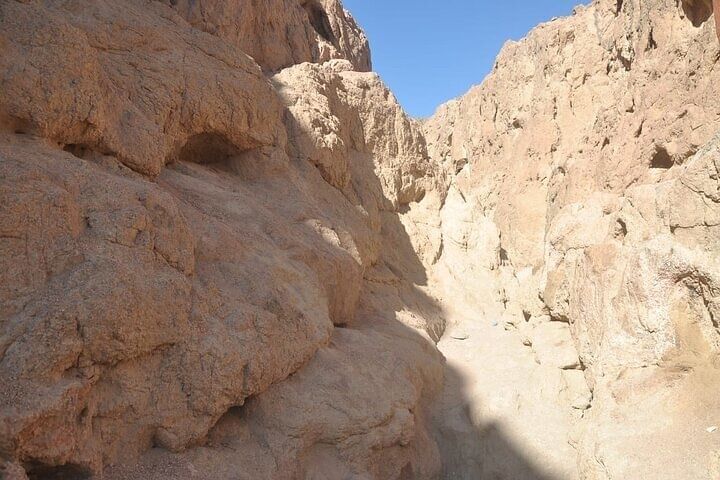 Experience a day trip from Sharm El Sheikh to the Blue Hole and Dahab Canyon, including lunch and a camel ride. Explore the stunning Blue Hole for snorkeling or diving