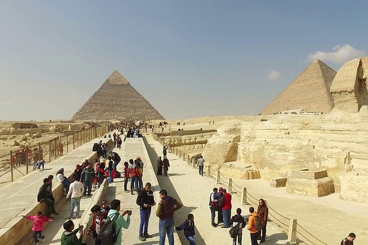 Experience the rich history of Egypt on an over-day trip from Hurghada to Cairo, where you'll explore the iconic Pyramids of Giza, the Egyptian Museum, and enjoy a delicious lunch.