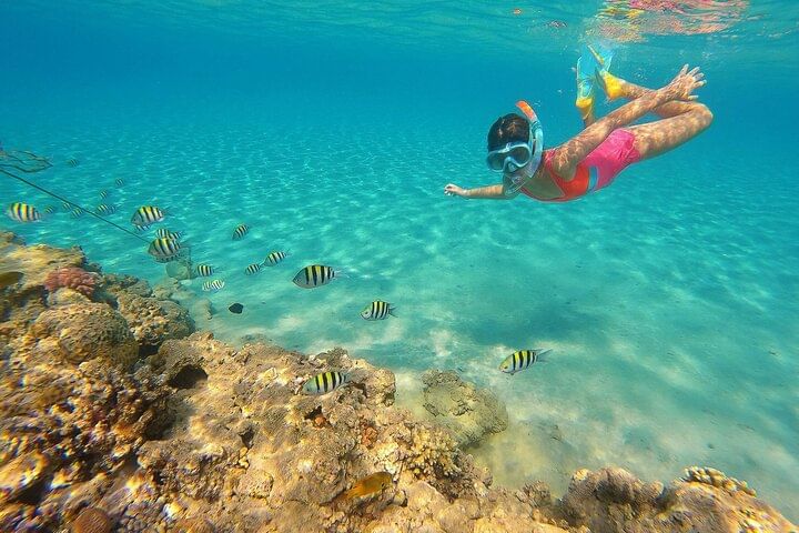 Your day begins with a peaceful boat cruise, taking around two to two and a half hours to reach the picturesque Dolphin House. Once there, dive into your first snorkeling session, guided by an experienced professional who will lead you through the crystal-clear waters of this incredible reef.