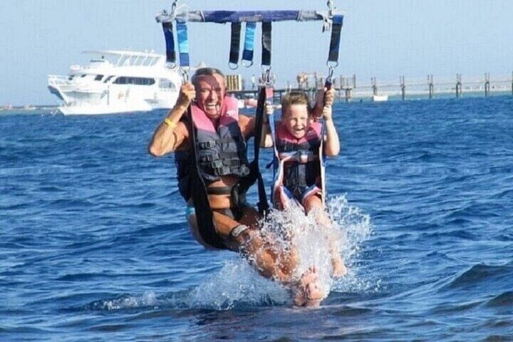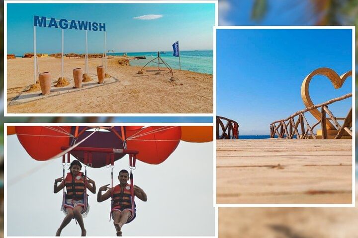 Set off on a thrilling escapade with our ( Epic Magawish Island Water Sports, Parasailing & Lunch - Hurghada ), where adventure meets tranquility in perfect harmony. Begin your day with a breathtaking parasailing ride, soaring high above the Red Sea and soaking in panoramic views of Magawish Island and its picturesque surroundings. Next, dive into a world of excitement with a variety of exhilarating water sports, including jet skiing and paddleboarding, all set against the backdrop of the island's crystal-clear waters. Whether you’re chasing adrenaline or simply enjoying a splash, there’s an activity for everyone. After your action-packed morning, relax with a delectable lunch on Magawish Island, savoring an array of fresh, flavorful dishes while immersing yourself in the island’s peaceful ambiance. This perfect blend of high-octane fun and serene relaxation promises a day of unforgettable experiences and stunning vistas.