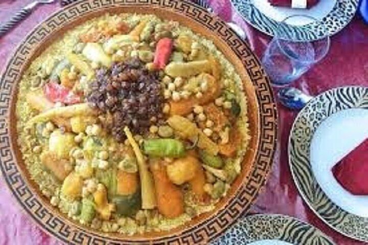 Enjoy a sumptuous multi-course Moroccan feast, featuring iconic dishes like slow-cooked tagine, fluffy couscous, grilled meats, and handmade local desserts, all served in a setting inspired by authentic Moroccan décor and hospitality.