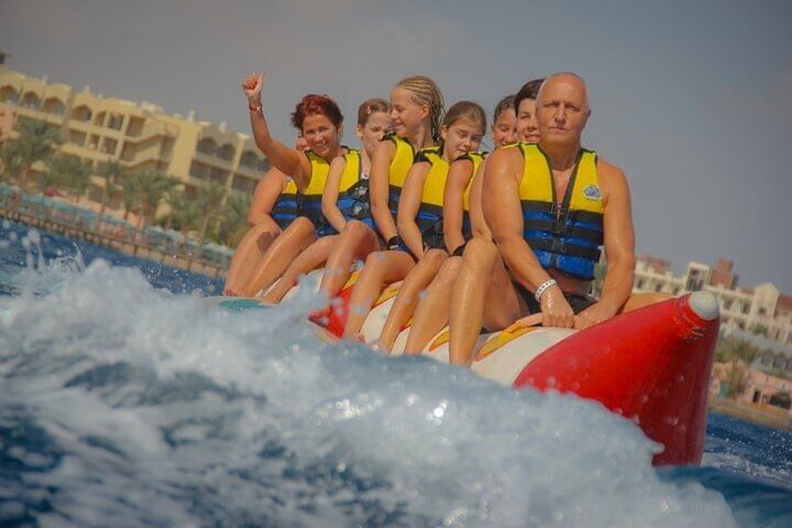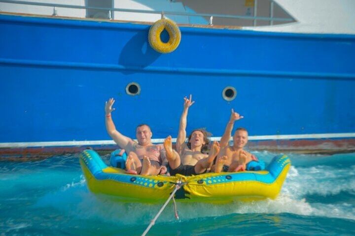 Spend a full day exploring the stunning Hula Hula Island with two guided snorkeling sessions at some of the Red Sea’s most colorful coral reefs. Relax on pristine beaches, swim in crystal-clear turquoise waters, or simply soak up the sunshine. For a thrilling twist, enjoy exciting banana and sofa boat rides that add an unforgettable rush to your day.
