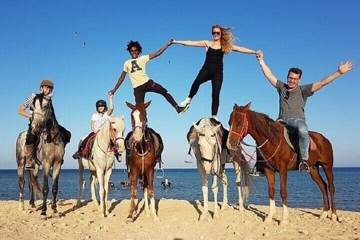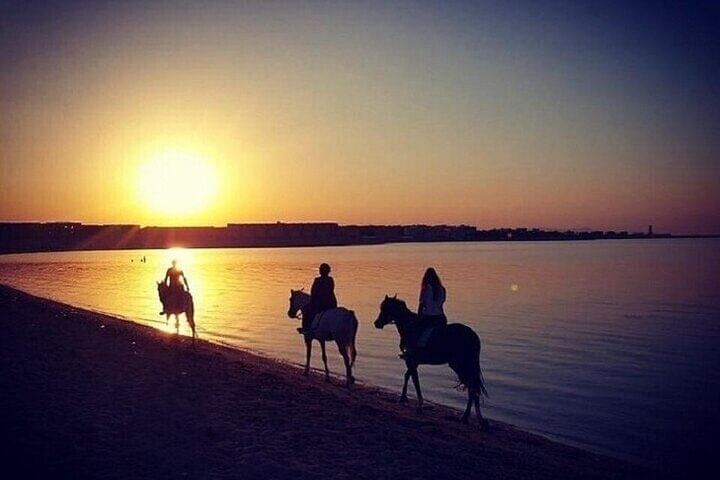 Discover Sharm El Sheikh on a 1-hour horse ride through picturesque desert landscapes, followed by a delightful Bedouin dinner and an enchanting Egyptian show.