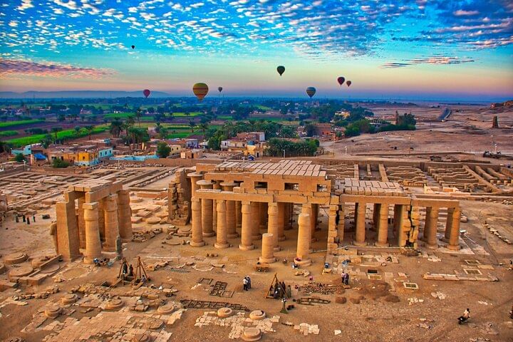 Delve into the elaborate burial chambers and hieroglyphics that narrate the tales of Egypt’s ancient rulers. Conclude your day with an exhilarating hot air balloon ride over Luxor, taking in panoramic views of the Valley of the Kings, Temple of Hatshepsut, Ramesseum Temple, and the tranquil Nile River as the sun rises.