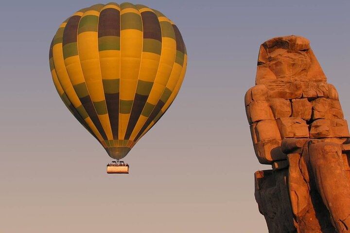 The next morning, begin with a hot air balloon ride at dawn, providing breathtaking views of the Valley of the Kings, Hatshepsut Temple, the Ramesseum Temple, and the majestic Nile River.