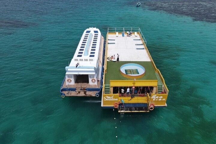 Experience the ultimate aquatic adventure with our ( Panorama Semi-Submarine Snorkeling with Parasailing - Hurghada ). Start your journey aboard the Panorama Semi-Submarine, where you’ll enjoy a dry yet immersive exploration of the Red Sea’s underwater wo