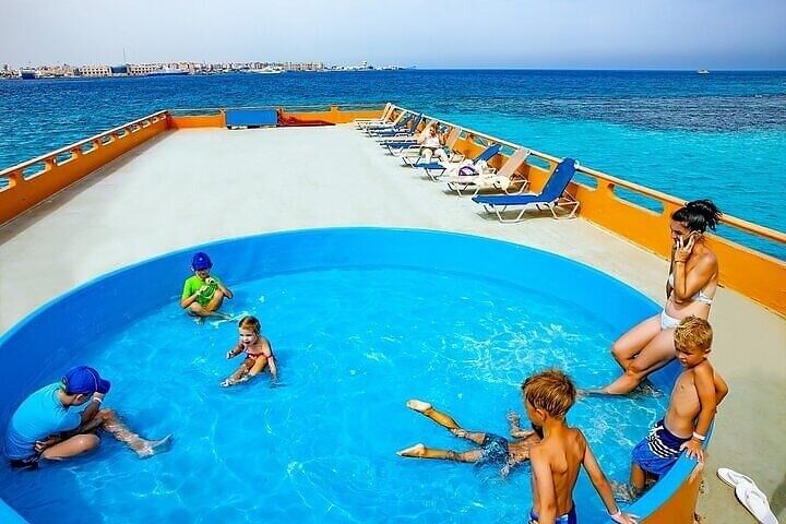 Perfect for families and travelers of all ages, this 3-hour marine adventure in Hurghada also features a dedicated kids' pool area surrounded by stunning Red Sea scenery—ensuring fun, safety, and smiles for your little ones.