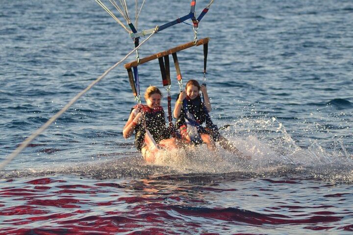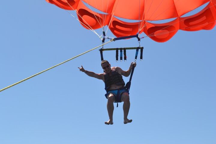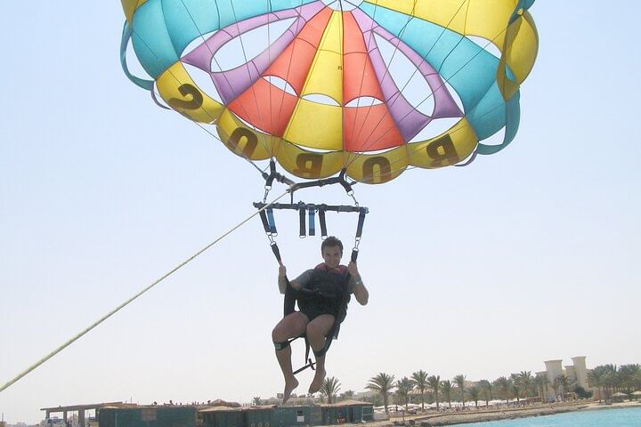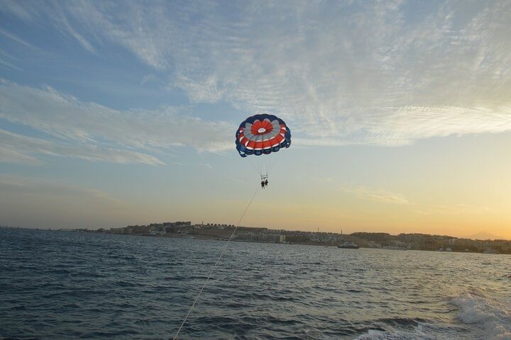 Get ready for an unforgettable parasailing adventure in Sharm El Sheikh, complete with convenient transportation to and from the launch site ( if option selected ). Enjoy a smooth and comfortable ride to your parasailing destination, where you'll receive a full briefing and safety instructions before taking flight. As you soar high above the Red Sea, take in panoramic views of Sharm El Sheikh’s stunning coastline and crystal-clear waters. Whether it’s your first time or you’re an experienced adventurer, this exciting experience offers a unique perspective of the city. Once you land, sit back and relax as you're safely transported back to your hotel. With professional instructors and top-notch safety measures, this parasailing adventure is both thrilling and worry-free. Capture breathtaking moments as you glide through the sky, making memories that will last a lifetime.