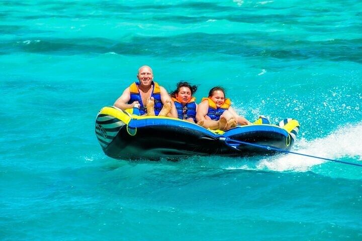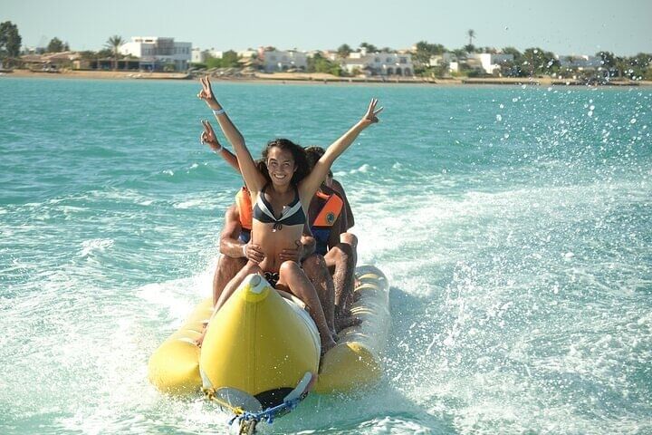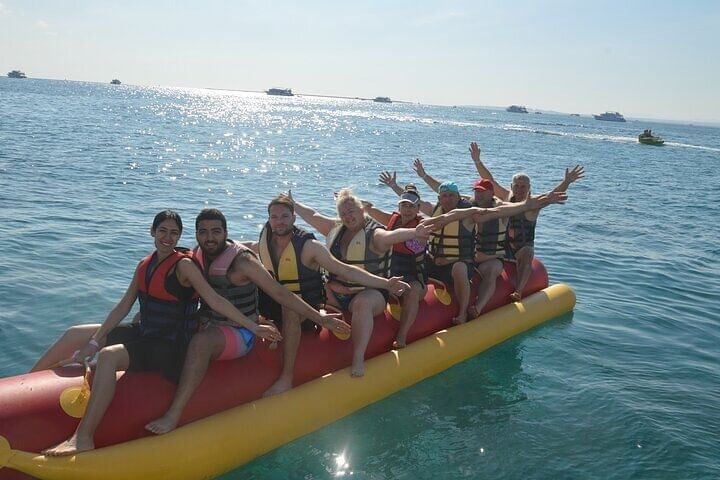 This adventure is a one-of-a-kind combination of Sharm El Sheikh’s most thrilling water experiences — all in a single, action-packed day. Unlike standard tours that focus on just one activity, this trip gives you the chance to ride, glide, and soar with a banana boat, quadra boat, and parasailing — offering triple the fun and variety in one seamless package.