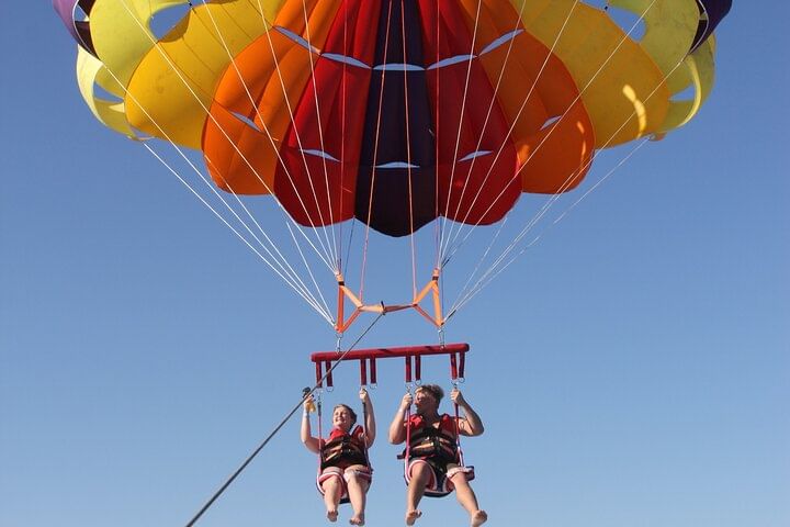 Immerse yourself in an action-packed day in Hurghada with a Private City Tour, Magic Catamaran Snorkeling, and Parasailing Adventure. Begin with a personalized city tour, where you'll explore Hurghada's highlights, from bustling local markets to significant landmarks, guided by a knowledgeable expert who will provide insightful commentary. After the city exploration, board the Magic Catamaran for an unforgettable snorkeling experience. Sail to pristine spots, where you’ll dive into clear waters teeming with colorful marine life and coral reefs. To cap off your adventure, soar above the Red Sea with an adrenaline-pumping parasailing ride, offering breathtaking aerial views of the coastline and turquoise waters. Throughout the day, enjoy the comfort of private transport, ensuring a seamless and luxurious experience. This tour combines cultural discovery, underwater exploration, and thrilling high-flying excitement for a comprehensive Hurghada adventure.