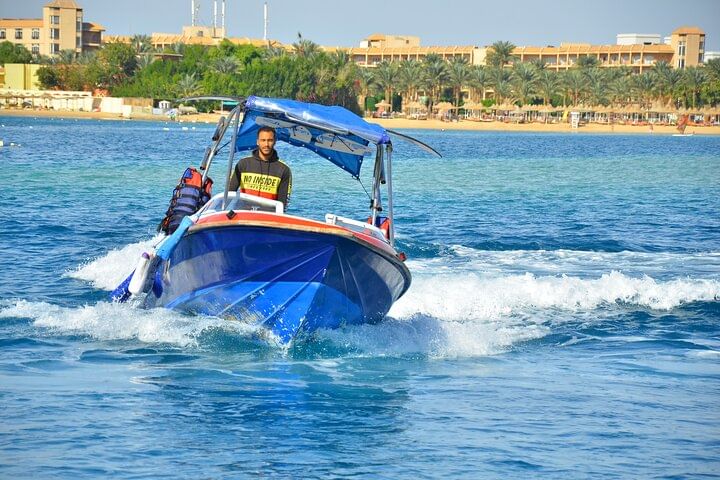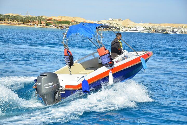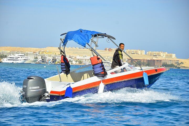 Enjoy a private 4-hour speedboat trip to Paradise Island from Hurghada, featuring exciting water sports. Explore beautiful beaches, crystal-clear waters, and indulge in activities like snorkeling and jet skiing for a memorable and exclusive adventure.