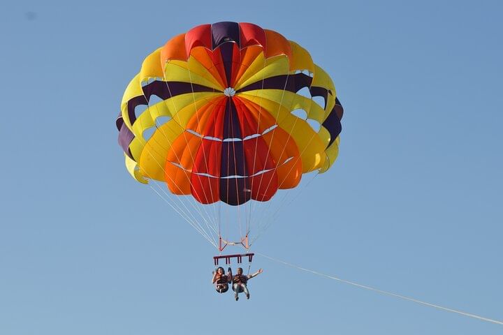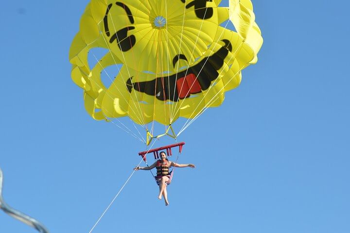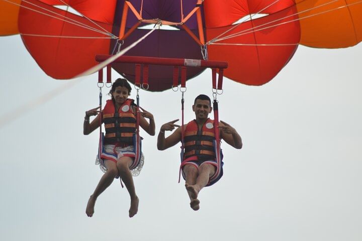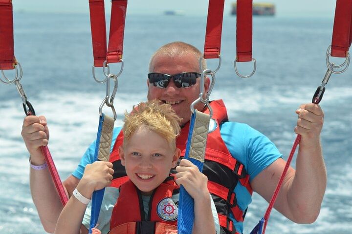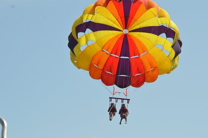 After snorkeling, take your adventure to new heights as you fly above the sea with parasailing. Enjoy breathtaking aerial views of the coastline before relaxing on your boat and soaking in the stunning surroundings. Finally, return to your hotel, carrying unforgettable memories of your thrilling 1-hour adventure on the Red Sea!
