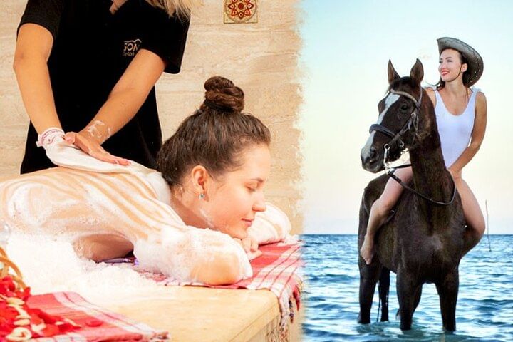 Enjoy a day of relaxation and adventure in Sharm El Sheikh with a Turkish bath and a 2-hour horse ride, including transfers. Start with a calming visit to a traditional Turkish bath, featuring steam rooms, a refreshing scrub, and a massage to rejuvenate y