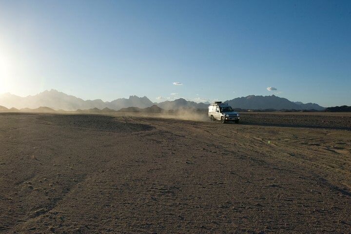 Enjoy a captivating full-day safari jeep adventure in Marsa Alam, culminating in an unforgettable sunset, dinner, and show with a camel ride.