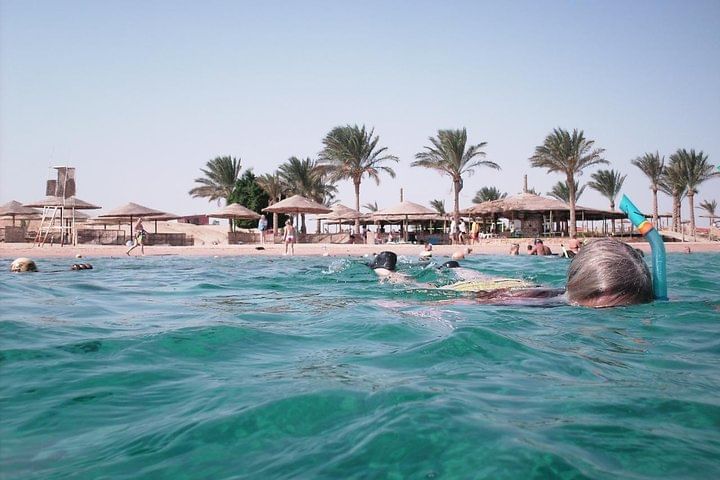 Enjoy a full day of snorkeling and relaxation with our Sharm El Naga day trip from Hurghada. Travel by car to this stunning location, where you'll explore vibrant coral reefs and marine life, followed by a delicious lunch on the beach, making for a perfect day of aquatic adventure and leisure.