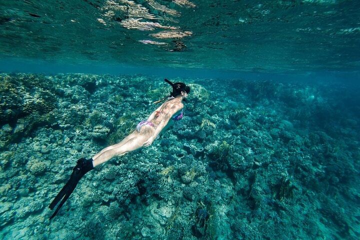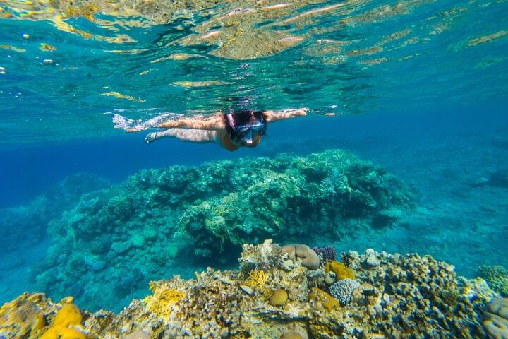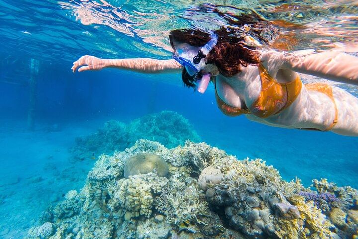 Join us for a full-day snorkeling trip to Tiran Island from Sharm El Sheikh, including lunch and transfers. Explore vibrant coral reefs and marine life while snorkeling, and savor a fresh lunch onboard for a seamless and memorable sea adventure.