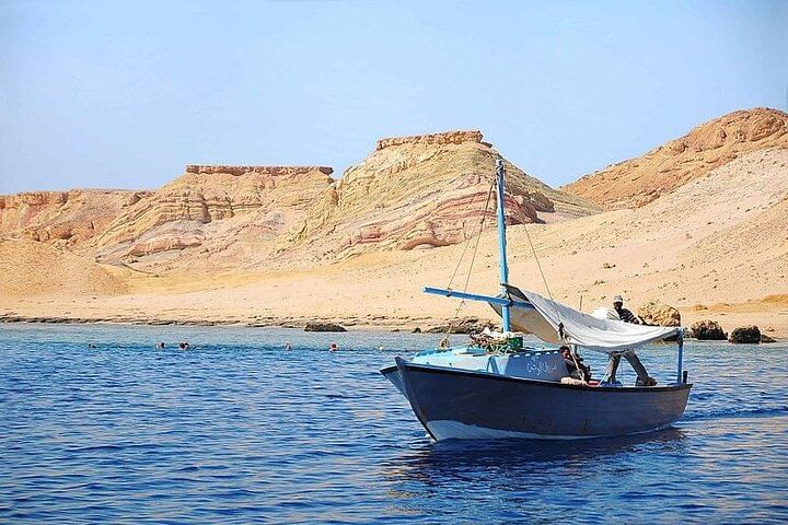 Enjoy a full-day snorkeling trip to Tiran Island from Sharm El Sheikh, including lunch and transfers. Explore vibrant coral reefs and marine life while snorkeling, and savor a fresh lunch onboard for a seamless and memorable sea adventure.