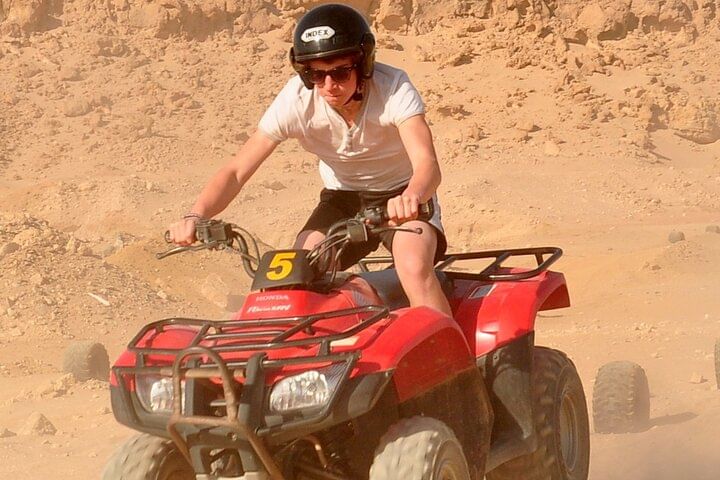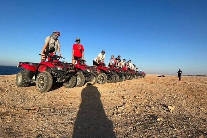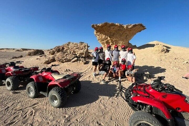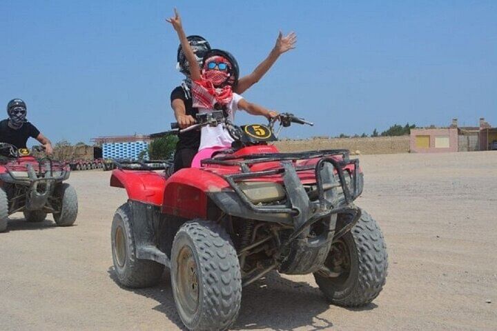 Embark on a 3-hour escapade in Hurghada that combines excitement with serenity. Start your journey with a heart-pounding quad bike safari, racing across the sweeping desert dunes and feeling the rush of speed.
